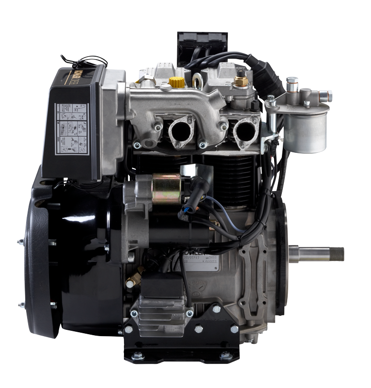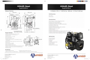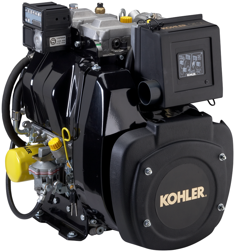 Kohler a Diesel, 4 tiempos, enfriado por aire, eje horizontal, 2 cilindros, arranque eléctrico. |
